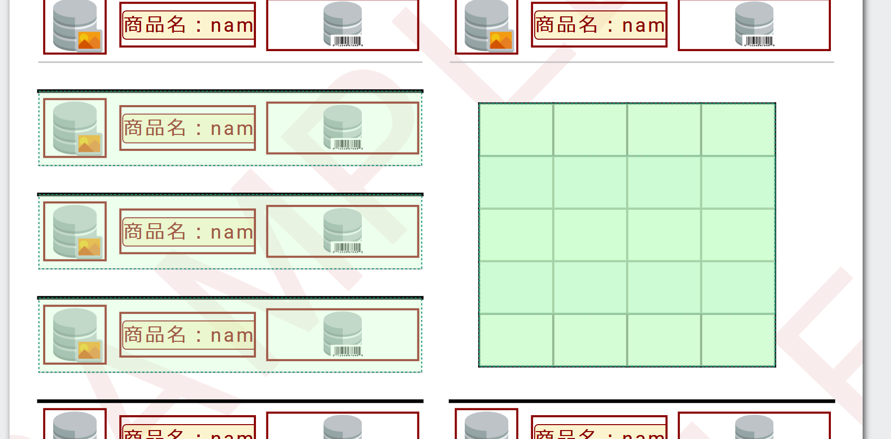 今までは帳票デザイナーでグループオブジェクトや複数のオブジェクトが重なっている時にオブジェクト選択状態がわかりにくい状態でしたが、表現を変更しまして一目で選択しているかどうかが分かりやすくなりました。